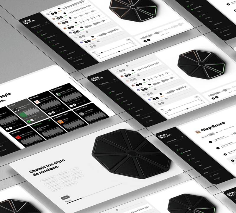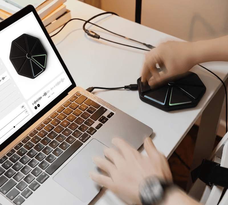 PanDrum blends product design, UI/UX, and Tangible User Interface (TUI) concepts to simplify drum machines for beginners. Inspired by the Handpan, it makes electronic beat-making tangible and organic, allowing users to intuitively create music by tapping physical pads to trigger samples.